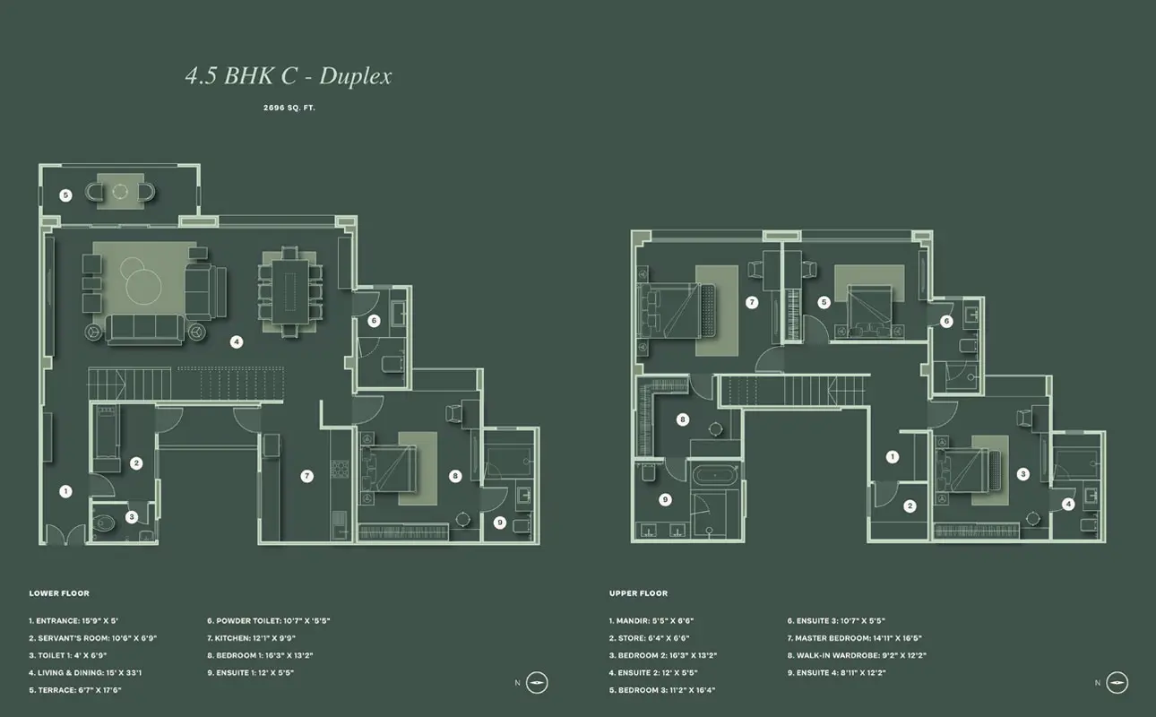Our 3 and 4.5 BHK Flats, along with a select few 4.5 BHK Duplexes, offer generous living spaces that cater to every need. Each residence is meticulously designed, featuring well-planned layouts that maximise natural light & ventilation.